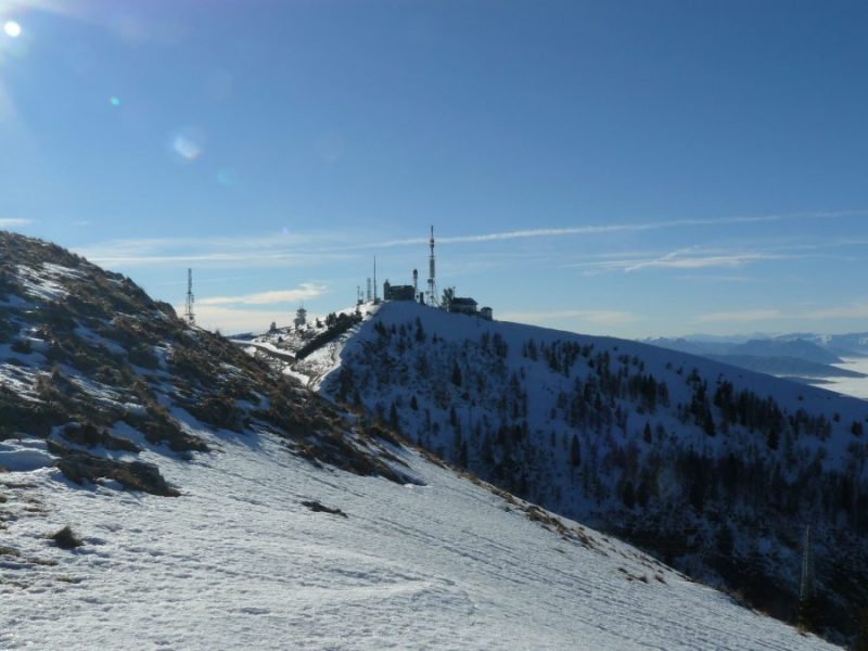 Nebbia fitta a Belluno. La voglia di fare due passi è tanta. Siamo indecisi se partire o meno. Alla fine poco dopo le 11 partiamo e ci dirigiamo verso il Nevegal. La nebbia arriva a circa 600 metri. Poi si dissolve contro ogni aspettativa. Si apre sopra le nostre teste un cielo sereno e azzurro. Sotto, la nebbia copre la val Belluna che sembra avvolta nel ghiaccio. Raggiungiamo il piazzale del Nevegal e troviamo subito un parcheggio.