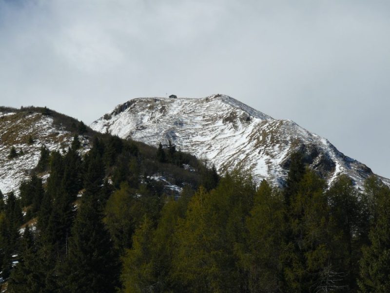 Ci prepariamo sotto leggeri fiocchi di neve, portati dal vento che discende dalla cima del Col di Lana. Ci incamminiamo sulla stradina silvo-pastorale, sulla destra che in 800 metri circa, di dislivello ci porterà in cima. Ma andiamo con ordine: imboccata la strada sterrata alle 9.15 ci innalziamo pian piano di quota e ci appare maestosa la Marmolada con i suoi 3000 metri, arriviamo in breve ad un ex rifugio, non ricordo il nome che era sede di un piccolo museo, oggi trasferito in paese siamo a Plan de la Lasta e ci inoltriamo ora nel Bosco dell’Impero non quello austriaco, contrariamente a quanto si può pensare, quello italiano e salendo in direzione della nostra cima, arriviamo ad una caratteristica fontanella e facciamo una foto.
