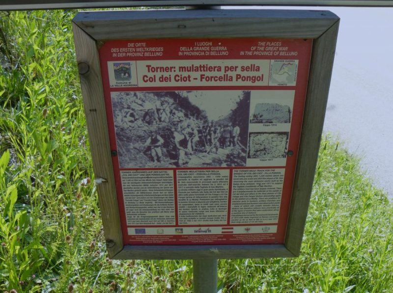 da Belluno raggiungiamo Torner, sono per noi le 9.15, il sentiero è un’antica strada militare (mulattiera) che sale per le pendici del monte Celo, il monte ha una quota di 2080 metri circa e per chi volesse raggiungere la cima vanno aggiunti 400 metri di dislivello comunque la strada termina poco distante la sella del Col dei Ciot.