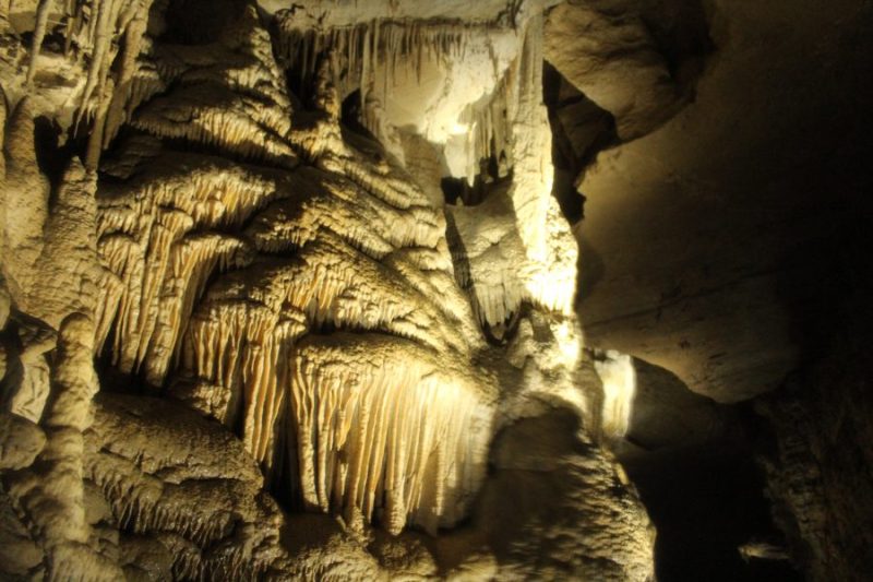 Nel pomeriggio ci inoltriamo nella sconosciuta e bellissima Alta Val Torre fino a raggiungere verso le 17.30 il minuscolo paese di Villanova delle Grotte e dopo aver fatto conoscenza con il posto ci accomodiamo alla trattoria Terminal delle Grotte dove mangiamo un buon piatto di cinghiale con polenta. Ci alziamo presto, la notte ci ha coccolato con le gocce d’acqua che picchiettavano sul tetto del camper, ma poi ha smesso e possiamo ammirare le cime innevate che ci circondano. Alle nove ci affrettiamo a fare il biglietto per la visita che partirà solo alle 11. Facciamo nell’attesa un altro giro di ricognizione in paese. La nostra guida si chiama Tiziana è brava e simpatica e ci spiega molte cose. La Grotta Nuova di Villanova si trova proprio sotto il paesino e infatti è stata scoperta nel 1925 da un abitante che poi fondò il Gruppo Esploratori che ancora oggi gestisce le visite guidate.