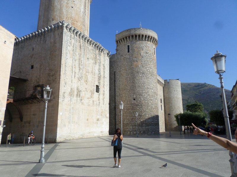 Una sorpresa è stata visitare il Ghetto Ebraico di Fondi, La Giudea, con il piccolo e ben curato Museo, ex-Sinagoga, che conserva le testimonianze della comunità ebraica presente a Fondi tra i secoli XI e XVI. Apprendiamo che la comunità ebraica era ben integrata e non subì mai vessazioni o espulsioni, lo stesso Ghetto non era chiuso e segregato come in altre città, ma un quartiere della stessa, differente solo per l’assenza di chiese cristiane e per la particolare architettura, come le scalinate delle case tutte rivolte verso la sinagoga, luogo sacro. Fondi è proprio superba, ha torri e mura imponenti, belle piazze senza traffico, nella piazza principale ci attira l’imponente Castello Baronale dei Caetani, simbolo della città (sec. XII-XV) con la sua torre cilindrica merlata e le altre torri angolari. A fianco il Palazzo del Principe, le maestose costruzioni sono state restaurate e aperte al pubblico, ma purtroppo la nostra visita è breve, ci accomiatiamo dallo zio presso la Chiesa di San Francesco (in stile gotico, costruita nel 1363), promettendo di tornare. Piantiamo come il solito un paletto virtuale, da riprendere in futuro. Oltre agli affetti ci attirano le molte offerte culturali, storiche, paesaggistiche, naturali e anche culinarie di questo territorio straordinario. Prima di volgere la prua a nord, facciamo la spesa in un negozietto di generi alimentari, frutta e verdura che ci delizieranno nei prossimi giorni e, come ci è stato suggerito dai miei cugini, facciamo un salto a Sperlonga, piccolo borgo affacciato sul mare. Per oggi è tutto… vi aspettiamo con i vostri commenti…