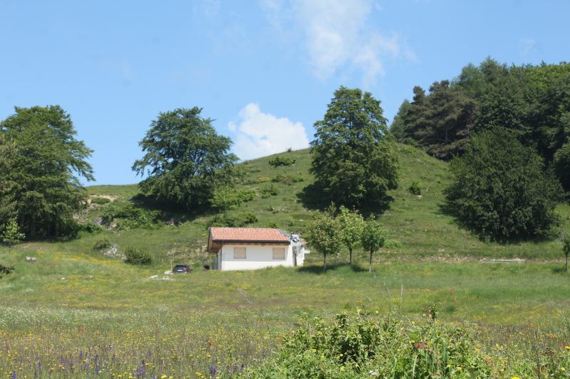 A Gatter prendiamo, al centro del borgo, il sentiero che passa sotto il piccolo portico di una casa e subito andiamo a sinistra (cartelli) per poi inerpicarci a destra, tagliando su sentiero alcuni tornanti della strada e dopo un tratto raggiungiamo un bivio. Seguendo le indicazioni continuiamo a salire per un pezzo ora su strada, ora su sentiero, fino a giungere all’incrocio per la Chiesa del Rocal che tralasciamo proseguendo per malga Albi. I numerosi cartelli indicano la direzione, non si può sbagliare. Ci alziamo ancora per il comodo sentiero tagliando i tornanti della strada e passato il bosco sbuchiamo sui prati fioriti di Malga Albi 1264 m.s.l.m. Purtroppo la costruzione è stata distrutta l’anno scorso da un incendio, pensavamo di poter fermarci per una birra, ma restiamo delusi. Speriamo che venga ricostruita al più presto, la malga offriva un buon ristoro ed è situata in una conca molto bella, circondata da boschi di faggi, abeti e larici e montagne. Ci portiamo sui verdi prati sopra la malga dove fotografo delle bellissime Peonie e Orchidee, il monte Bondone fa da sfondo ai fiori.