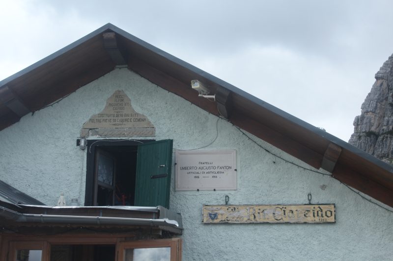 Torniamo indietro sulla stradina passando per Malga Pian dei Buoi, arriviamo al Bivio Pellegrini e poi allo spiazzo dove abbiamo lasciato l’auto, dal parcheggio in un quarto d’ora a piedi saliamo al Rifugio Ciareido, a quota 1969 metri. La vista da qui è meravigliosa soprattutto le Crode delle Marmarole ci attirano col loro fascino, come sarebbe bello raggiungere le forcelle e percorrere il sentiero attrezzato che le collega! Mettiamo nel cassetto anche questo sogno. Ci consolano l’ospitalità dei gestori e il buon pranzetto, nonostante il “distanziamento Covid” l’atmosfera è serena e ci possiamo rilassare.