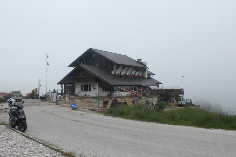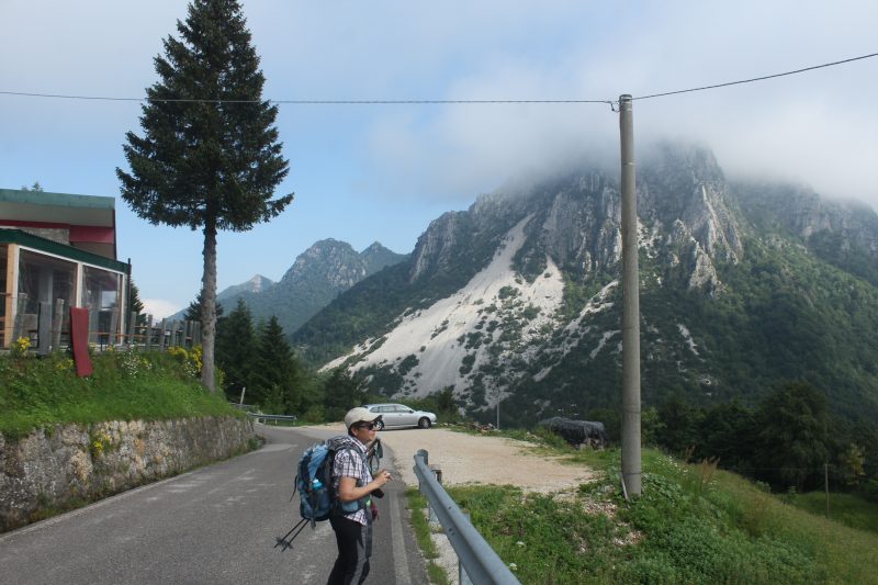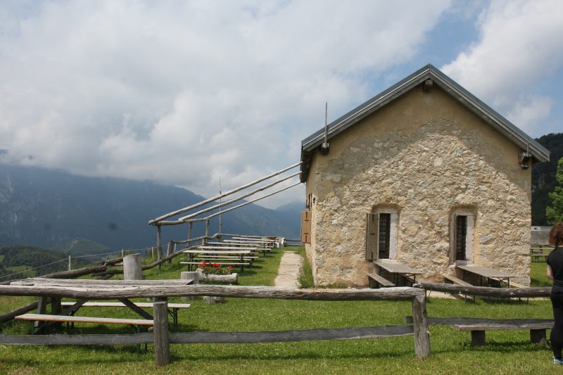 Siamo in un luogo ricco di memoria, facciamo una breve sosta per leggere i pannelli descrittivi, siamo sul valico alpino che ora separa (o collega, secondo i gusti) il territorio vicentino dal trentino dividendo il gruppo del Carega dal Sengio Alto, ma un tempo era il confine tra il Regno d’Italia e l’Impero Austro-Ungarico, prima ancora, come indicato sui cippi posti nel XVIII secolo, il confine tra la Repubblica di Venezia e i domini austriaci del Sacro Romano Impero.