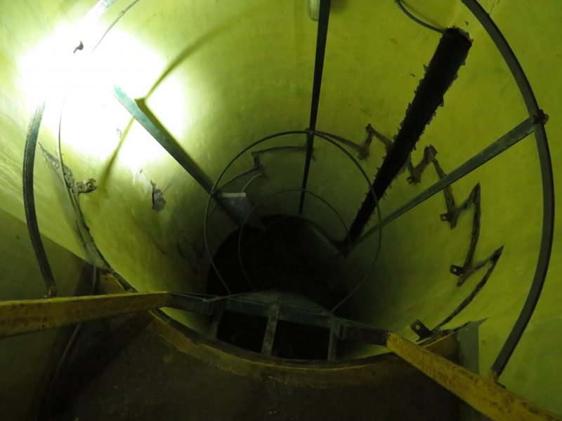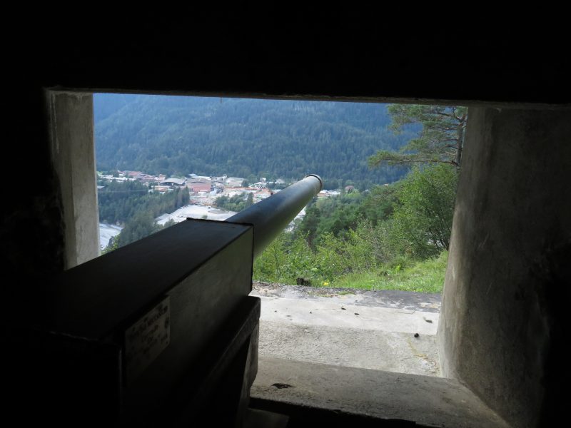 Le opere più interessanti sono quelle della postazione bassa, scendiamo nuovamente i 400 scalini (396 per la precisione) e entriamo per uno dei due ingressi. Questa volta ci muoviamo con molta più disinvoltura percorriamo il labirinto dei corridoi con le deviazioni che portano in tante stanze: il ricovero del presidio che poteva contenere una quarantina di soldati, l’alloggio del comandante, i depositi dei viveri e quelli delle munizioni, la sala radio, le cucine, i servizi igienici, l’infermeria, le cisterne per l’acqua, la stanza per il gruppo elettrogeno. Tutto era separato da porte stagne, alcune ci sono tutt’ora, erano a protezione da ogni esalazione di gas sia interna sia proveniente dall’esterno. Ripercorriamo i corridoi che ci portano alle cannoniere e alle postazioni blindate per le mitragliatrici, l’armamento era previsto in cannoni di medio calibro, mortai, lanciafiamme e mitraglie. Le armi erano rivolte verso Cima Gogna e la vecchia strada che porta in Comelico.