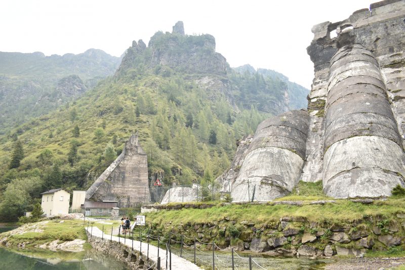A questo punto il sentiero si fa più pianeggiante e in cengia, posso godere una vista mozzafiato sulla Presolana, inizio a intravedere i resti della diga che raggiungo in 30 minuti circa. C’è un ristoro dove mi fermo a prendere un tè e scambiare alcune chiacchiere con il gentilissimo signore del bar che mi racconta la storia del Gleno, ma anche delle difficoltà di tenere aperto un chiosco a questa quota dove nessuna strada lo raggiunge: tutti i giorni deve portare a spalla parte dei viveri e delle bevande e riportare sempre a spalla i rifiuti a valle.
