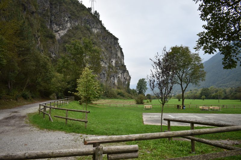 Vado allora alla ricerca della Cascata Fontana Santa. Si trova in un bellissimo parco dove passa la ciclabile del Brenta-Lago d’Idro. Ragguingo il parco in camper e, lasciato il veicolo, inizio la visita a piedi. La passeggiata è breve e facilissima, adatta a tutti.