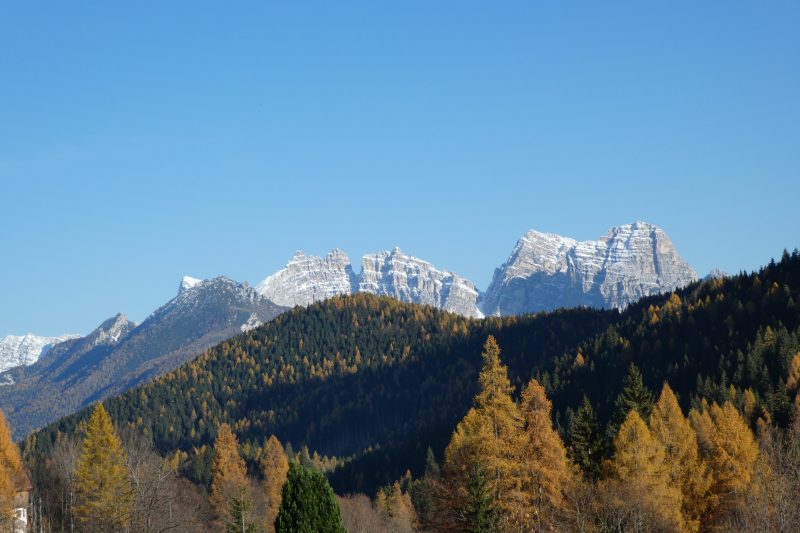 L’abitato con i vecchi fienili, i prati, la fontana, è molto ben tenuto, forse varrebbe la pena di salire fino alla chiesa posta più in alto, in mezzo alle case, ma dopo aver ammirato la vista sulle cime degli Sfornioi e del Bosconero e dato un ’ultimo sguardo ai boschi che abbiamo appena lasciato, sovrastati dal San Sebastiano, preferiamo scendere per la strada ritornando a Gavaz e alle auto. Ci salutiamo qui, ma a Dont i più golosi fra noi (io fra questi) fanno una sosta alla storica Gelateria Bar Pelmo (Piazza Santa Caterina, 1) per gustare un gelato artigianale, una tappa che vale sempre la pena di fare al rientro da un’escursione o dalle piste da sci!