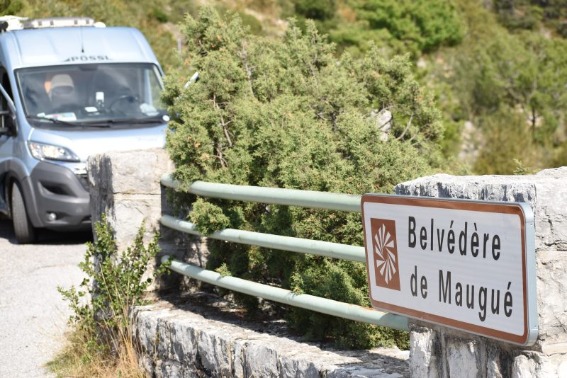 Da Castellane seguiamo il corso del Verdon alla scoperta della riva destra, tappa altrettanto interessante delle precedenti di questo viaggio, scendiamo inseguendo le acque del Verdon per la strada D 952 raggiungendo Pont de Soleils, proseguiamo sempre sulla riva destra e giungiamo al Pont de Carajuan, da dove parte un itinerario escursionistico da fare a piedi. Più avanti usciti da una galleria troviamo alla nostra sinistra un bivio con le indicazioni per il Coloir Samson, giriamo e raggiungiamo il parcheggio Samson nella speranza di poter arrivare con il camper al “Coloir Samson” da dove parte il sentiero Martell. La strada però è riservata solo alle navette che accompagnano gli escursionisti che vogliono fare canyoning o percorrere il sentiero Martel, che era un mio progetto. A questo punto decidiamo di tornare indietro e di raggiungere Point Sublime, un altro balcone panoramico, per osservare la gola del Verdon.