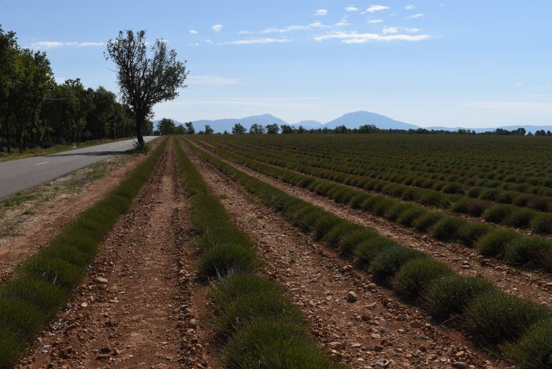 Il “plateau” di Valensole è circondato da tre vallate, quella della Blèone a Nord, della Durance a Ovest e del Bas-Verdon a sud ed è attraversato anche dalla Vallata dell’Asse, con la complicità del clima è un territorio abbastanza fertile e favorisce varie colture, in particolare dei girasoli e soprattutto della lavanda: i numerosi campi “lavandin” rendono il paesaggio unico nei periodi antecedenti alla mietitura della pianta, generalmente giugno e luglio, trasformando le aree intorno ai villaggi provenzali in distese violacee particolarmente apprezzate da fotografi e turisti. Ci fermiamo per fare degli acquisti per dei regali ad una rivendita che si trova sulla strada D 6 al negozio “Terraroma Lavande di Amandes”, dopo questa pausa riprendiamo la via per raggiungere Valensole dove arriviamo verso le dieci e trenta.