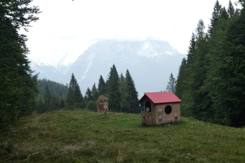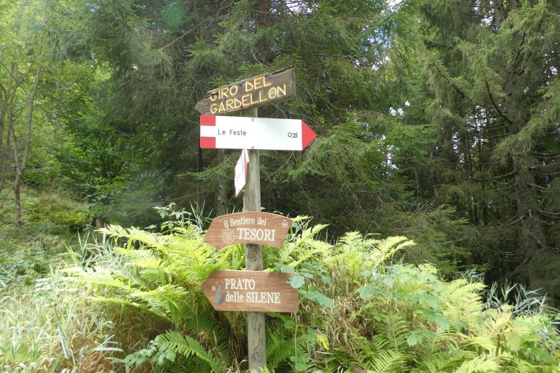 Il posto è questo, anche se un po’ cambiato, una volta era molto apprezzato per le sue piste da sci, ma l’Agnèr, a nord, domina sempre il bel valico prativo circondato da boschi, ci sono un bar-ristorante, poche case-vacanza, una chiesetta. Di cambiato trovo la cartellonistica nuova che indica il “Giro del Gardellon”, un rilievo modesto (m. 1499) posto a sud. Seguendo i cartelli mi incammino per la stradina dove all’inizio trovo il “percorso vita” con gli attrezzi ginnici, poi il sentiero continua in mezzo ai bellissimi boschi, il verde sottobosco è ricco di felci e muschi, punteggiati da rosse amanite, belle a vedersi ma purtroppo velenose. È una piacevole passeggiata con pochissimo dislivello, adatta anche ai bambini: ci sono simpatici cartelli che illustrano il “Sogno di Gioacchino, seggiolaio di Gosaldo”, qualche scultura di legno (animali, gnomi), una casetta per i bimbi e i “bug hotel” le casette per api e insetti impollinatori.