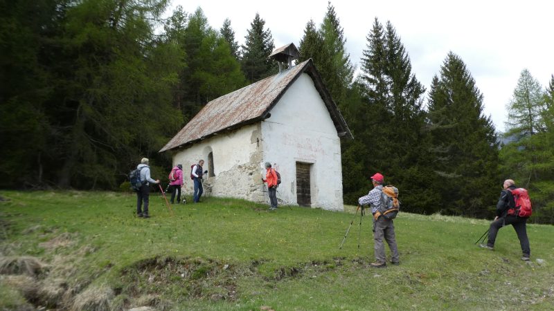 Dalla Casa dell’Acqua il sentiero va tutto in discesa, lungo il percorso troviamo qualche facile schianto da superare, camminiamo in mezzo ai boschi verso i Piani di Dubiea, m. 1000, bellissimi pascoli appartenenti alla comunità di Perarolo dove sorgono alcune casere, la piccola Chiesa di Sant’Osvaldo (sulla parete esterna un graffito con la data 1790) e i ruderi di un antico borgo.