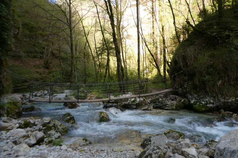 Entriamo nel grande antro che milioni di anni fa era il rifugio dell’orso delle caverne, una specie di orso taglia XXL vissuto in tutta l’Eurasia nel Pleistocene, quell’Ursus spelaeus (di speleo, di caverna, non “orso spelato”) che fa bella mostra di sé in alcuni cartelloni all’ingresso. Non c’è traccia di orsi al momento, solo un piccolo pipistrello svolazza qua è là vicino al soffitto, disturbato dalla nostra presenza. Sono contenta di aver soddisfatto il mio desiderio di tornare in questo posto, anche se il posto pare in abbandono. La mia amica si è rinfrancata e mi invita a proseguire arrampicando per uno stretto sentiero dotato di cordino. La seguo e arriviamo ad una cascata, molto più piccola del Salton ma bella, il torrente precipita dall’alto e fa numerosi salti prima di arrivare al Senaiga, purtroppo il proseguo della traccia è inagibile. Torniamo indietro e invece di rifare il lungo percorso fatto in discesa prendiamo una traccia che sale diritta nel bosco, è più faticosa ma in meno tempo ci porta in alto, passiamo un bel tatto roccioso e sbuchiamo, come pensavo, su una curva della stradina che scende da Crosere, ora ricordo che col CAI eravamo discesi e risaliti da qui. Non risaliamo per la stradina ma prendiamo il sentiero che sale accanto, tagliandone le curve e arriviamo a Crosere, vicino ad una cappella. Scendiamo alla piazzetta per rinfrescarci alla fontana e la nostra avventura ha un simpatico epilogo: veniamo invitati da due amichevoli coppie del posto (abitanti saltuari, il paese si sta spopolando e attualmente restano solo una cinquantina di residenti) alla tavola imbandita sotto il loro portico. La mia amica è astemia, ma io gradisco volentieri un “goto” di vino gustando la buonissima focaccia fatta in casa, chiacchierando insieme di storie e curiosità del luogo. Finiamo con altra focaccia e due tazze di caffè prima di salutare e ringraziare i nostri squisiti ospiti.