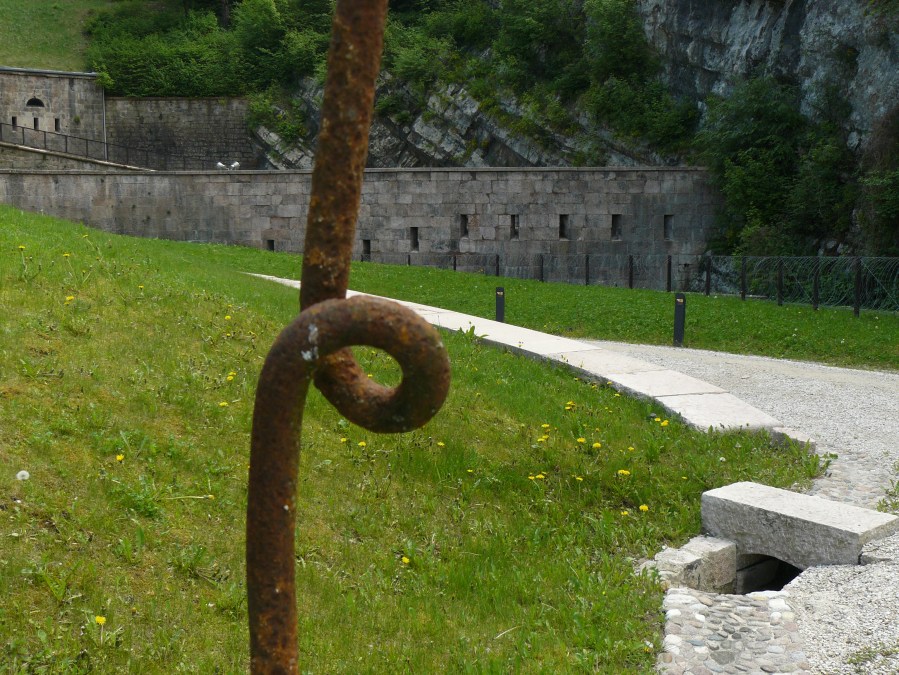 Dopo la visita interna, dove ci sono strumenti interattivi, installazioni sensoriali, pannelli esplicativi e tavoli multimediali ho visitato l’esterno del forte e i dintorni; con il giardino, che è uno piccolo spazio verde che oggi colora e fa da contorno di pace e silenzio attorno al forte, nell’aria volano leggere le farfalle ne approfittano della bella giornata. Le auto non transitano più per il stretto portone del forte e il canyon del torrente Vela, io ricordo di esserci passato migliaia di volte in auto, con i miei genitori, oggi una comoda moderna e larga galleria lo aggira e ci porta velocemente a Trento. Oltre ai locali aperti al pubblico ha altri spazi interrati, attualmente non visitabili.