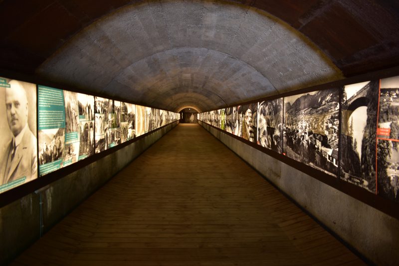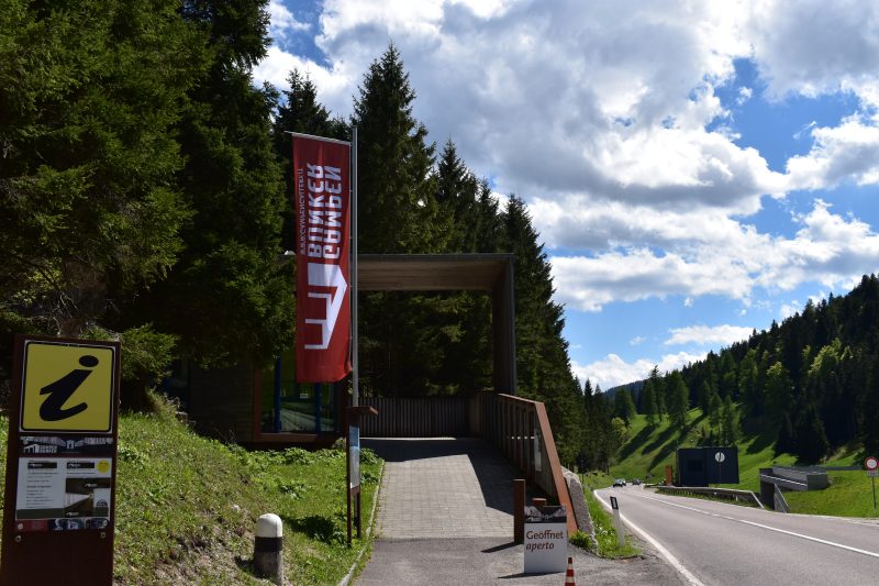 Il bunker è situato in cima alla strada statale delle Palade, la cui costruzione è iniziata nel 1935 e ultimata nel 1939. Il bunker, uno dei più estesi dell’Alto Adige anche se non terminato, prevedeva la costruzione di 4 piani, oggi solo uno è visitabile; la fortificazione avrebbe dovuto impedire al Reich tedesco di accedere al territorio italiano. Nella lunga galleria trovo l’esposizione di fotografie scattate all’epoca che illustrano l’avanzamento della costruzione della strada che, superando un dislivello di 1202 metri, mette in comunicazione Lana in Alto Adige e Fondo in Trentino.
